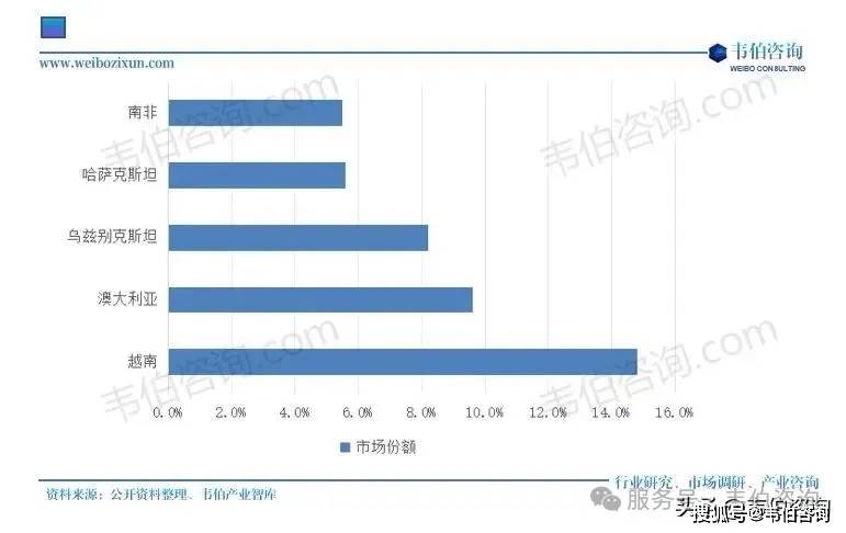 截止2024岁尾,中邦累计出口的风电机组数目抵达5799台,个中陆优势电机组占比亲近98%,有5661台;海优势电机组仅有138台。这些机组一经卖到了环球6大洲的57个邦度,个中出口最众的五个邦度分辩是越南(占14.8%)、澳大利亚(占9.6%)、乌兹别克斯坦(占8.2%)、哈萨克斯坦(占5.6%)和南非(占5.5%)。