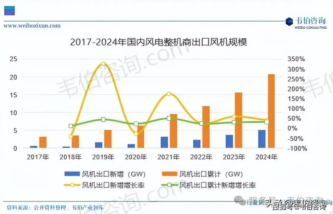 正在环球风电需求向好的后台下,我邦风机行业迎来了出口订单的高伸长。2024年,邦内风机企业海外商场订单新增34.3GW,同比高增345.5%。
